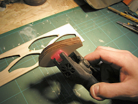 | 乾燥後、リップの穴をカッターやルーターで整形し、エポキシ系の接着剤などでリップを取り付け。 |